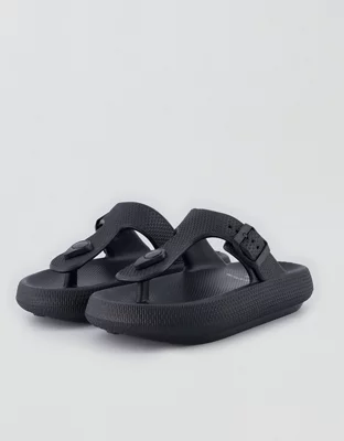 Meet Flo, Cushionaire's super comfortable squishy thong sandal. Flo's spongy molded footbed sits on top of a 1.75 inch platform, cushioning your steps for the ultimate comfort. These comfy pillow slides are also completely waterproof, with a soft and flexible adjustable upper and outsole.