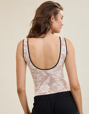 This seasons most elevated lace in a femme bodysuit with bow details.