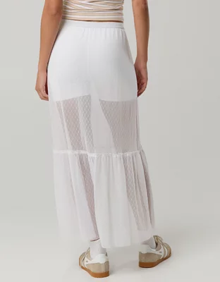 OFFLINE By Aerie Tiered Dot Mesh Maxi Skirt