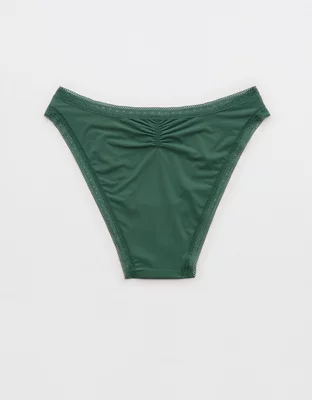 Smooth Microfiber in a low rise, high cut bikini fit with lace trimming.