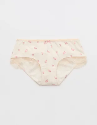 Feminine pointelle fabric with lace trim and bow details in in a low rise, boybrief fit.
