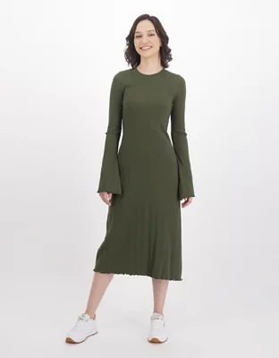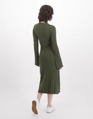 Aerie Ribbed Knit Long Sleeve Midi Dress