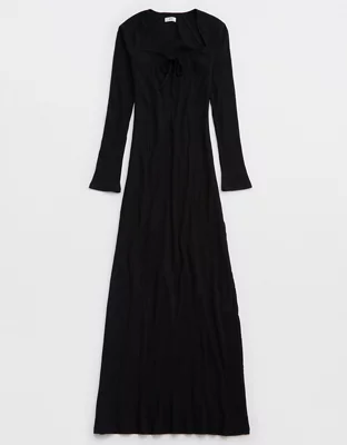 Aerie Long Sleeve Knit Tie Front Maxi Dress