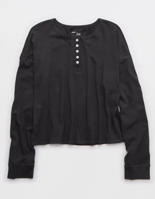 Aerie Cotton Mix Henley Long Sleeve Shirt