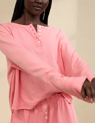 Aerie Cotton Mix Henley Long Sleeve Shirt