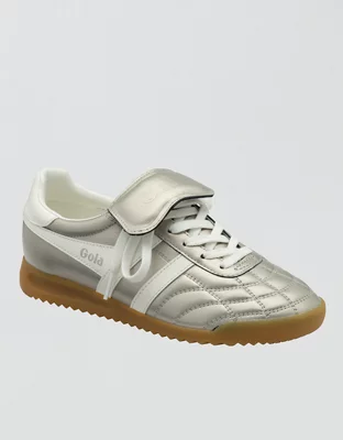 Stylish retro sneaker with a champagne shimmer! Quilted upper and translucent gum sole sneakers make these the statement trainer of the season.