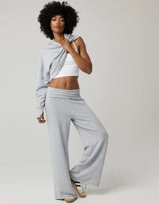 OFFLINE By Aerie OTT Fleece Super Wide Leg Foldover Pant