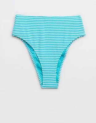 Aerie Crinkle Stripe High Cut Cheeky Bikini Bottom