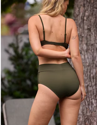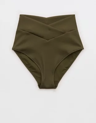Aerie High Rise Full Coverage Crossover Ribbed Bikini Bottom