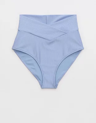 Aerie Shine Rib Crossover High Waisted Bikini Bottom