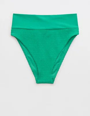 Aerie Smocked High Cut Cheeky Bikini Bottom
