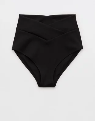 Aerie High Rise Full Coverage Crossover Ribbed Bikini Bottom