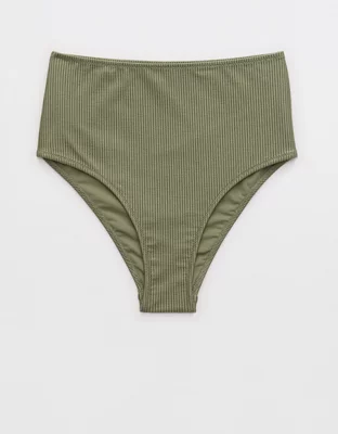 Aerie Shine Rib High Waisted Cheeky Bikini Bottom