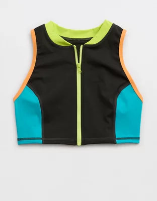 The Contour Zip Crop in Coal Crush is your go-to for any summer water activity. Featuring a distinctive zip front, this crop top offers an edgy yet functional detail, allowing you to customize your neckline and level of coverage