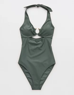 Aerie Horseshoe Ring Halter Full Coverage One Piece Swimsuit
