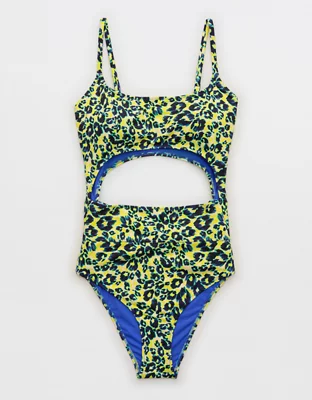 Aerie Leopard Seamed Longline Triangle Bikini Top