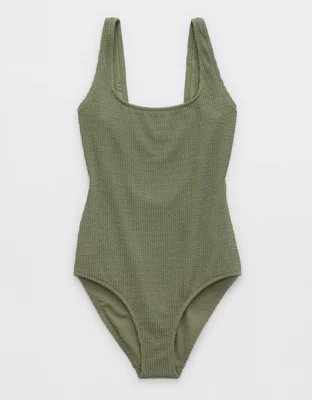 Aerie Shimmery Crinkle Scoop Full Coverage One Piece Swimsuit