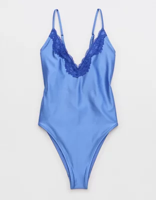 Aerie Shine Lace Plunge One Piece Swimsuit