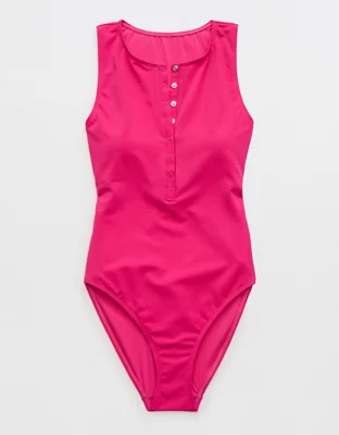 Fun and flexible, this one piece is an effortless mix of sporty and sexy with a high, snap-front neckline for versatile perfection.
