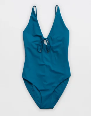 With a plunging V-neckline featuring keyhole tie detail, the Sicily one-piece is a timeless silhouette with a sexy feel. Adjustable straps, removable cups, and medium coverage allow for a customizable look and fit.