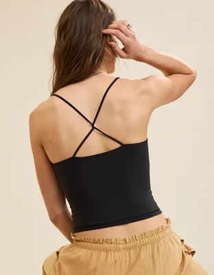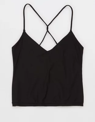 An easy, stretchy tank top with cross back detailing and a cropped length.