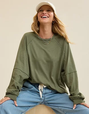 Aerie Cozy Long Sleeve Oversized Boyfriend T-Shirt
