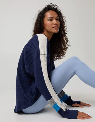 OFFLINE By Aerie Wow! Waffle Notch Neck Long Sleeve T-Shirt