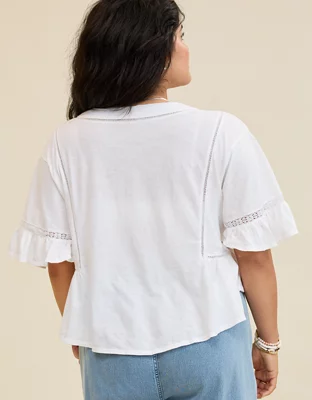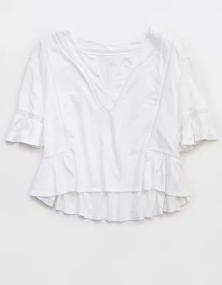 Aerie Flowy Cropped Notch Neck T-Shirt