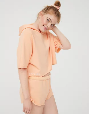 OFFLINE By Aerie OTT Fleece Short Sleeve Cropped Hoodie