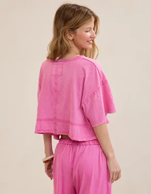 Aerie Happiest Cropped V Neck T-Shirt