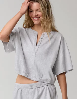 OFFLINE By Aerie Pique Henley Short Sleeve T-Shirt