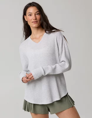 OFFLINE By Aerie Wow! Waffle Notch Neck Long Sleeve T-Shirt