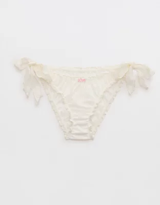 New Heart Mesh with embroidered appliques and ruffled edges in a low rise, high cut bikini fit.