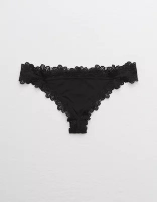 Aerie Lace Trim Shine Thong Underwear