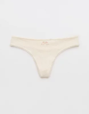 Superchill Cotton Ruched Picot Thong Underwear