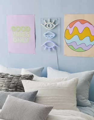 Luck for life. Shades of blue in this Evil Eye neon sign will cast a calm glow over your space. Features three different shapes and a playful ombré effect.