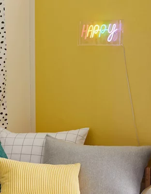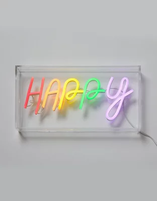Feeling good. Big smiles. The Happy Neon Sign is a pop of positivity you need in your life.
