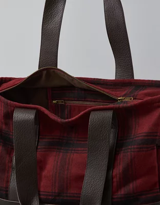 Perfect for a weekend getaway, this durable tote bag holds all of your essentials, finished in classic buffalo check plaid.