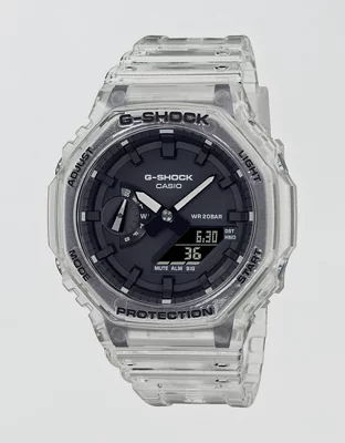 From G-SHOCK, the toughness watches that are ever evolving in an endless pursuit of strength, the skeleton series models are made from translucent resin parts. Based on the popular GA-2100 with its carbon core guard structure and octagonal bezel, this skeleton series model features chic coloring, making it a true fashion item.
