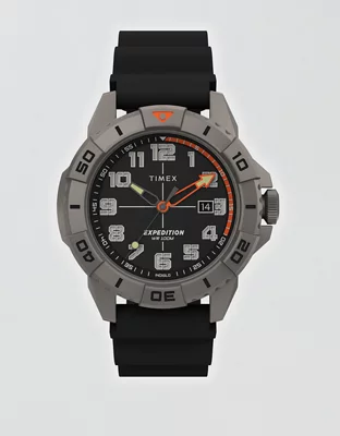 The diver-inspired metal case features a 41mm uni-directional rotating bezel, a tactical crosshair design against luminescent hands, and a durable, black resin strap.