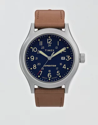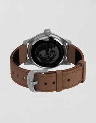 Adventure awaits. Wrap your wrist in this sturdy watch with a sturdy stainless steel case and sleek leather strap.