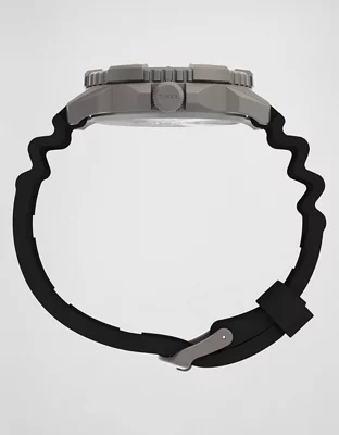 The diver-inspired metal case features a 41mm uni-directional rotating bezel, a tactical crosshair design against luminescent hands, and a durable, black resin strap.