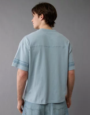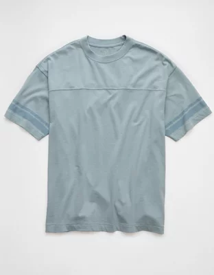 A trend-forward boxy fit with a sporty retro football tee-inspired construction.