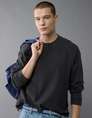 AE Long-Sleeve Boxy Sueded Jersey T-Shirt