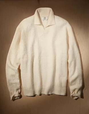 A vintage-inspired silhouette meets iconic AE comfort in this laidback long sleeve sweater polo that's brushed for added softness.
