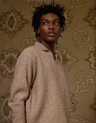 A vintage-inspired silhouette meets iconic AE comfort in this laidback long sleeve sweater polo that's brushed for added softness.