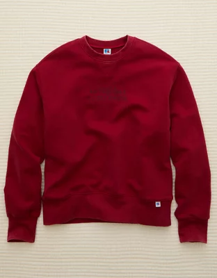 Russell and AE collaborated to revive the archival crewneck sweatshirt, featuring stenciled graphics and a modernized zip pocket for your phone and other essentials.