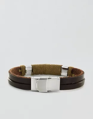 A ruggedly handsome leather bracelet featuring rope & stainless steel accents for daily wear.
