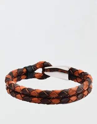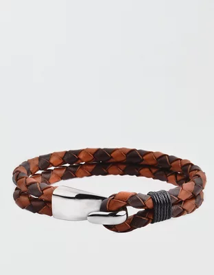 West Coast Jewelry Stainless Steel Braided Leather Bracelet