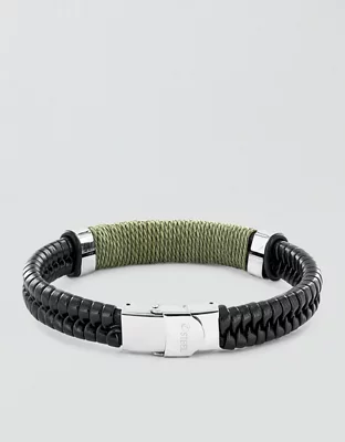 A ruggedly handsome leather bracelet featuring rope & stainless steel accents for daily wear.